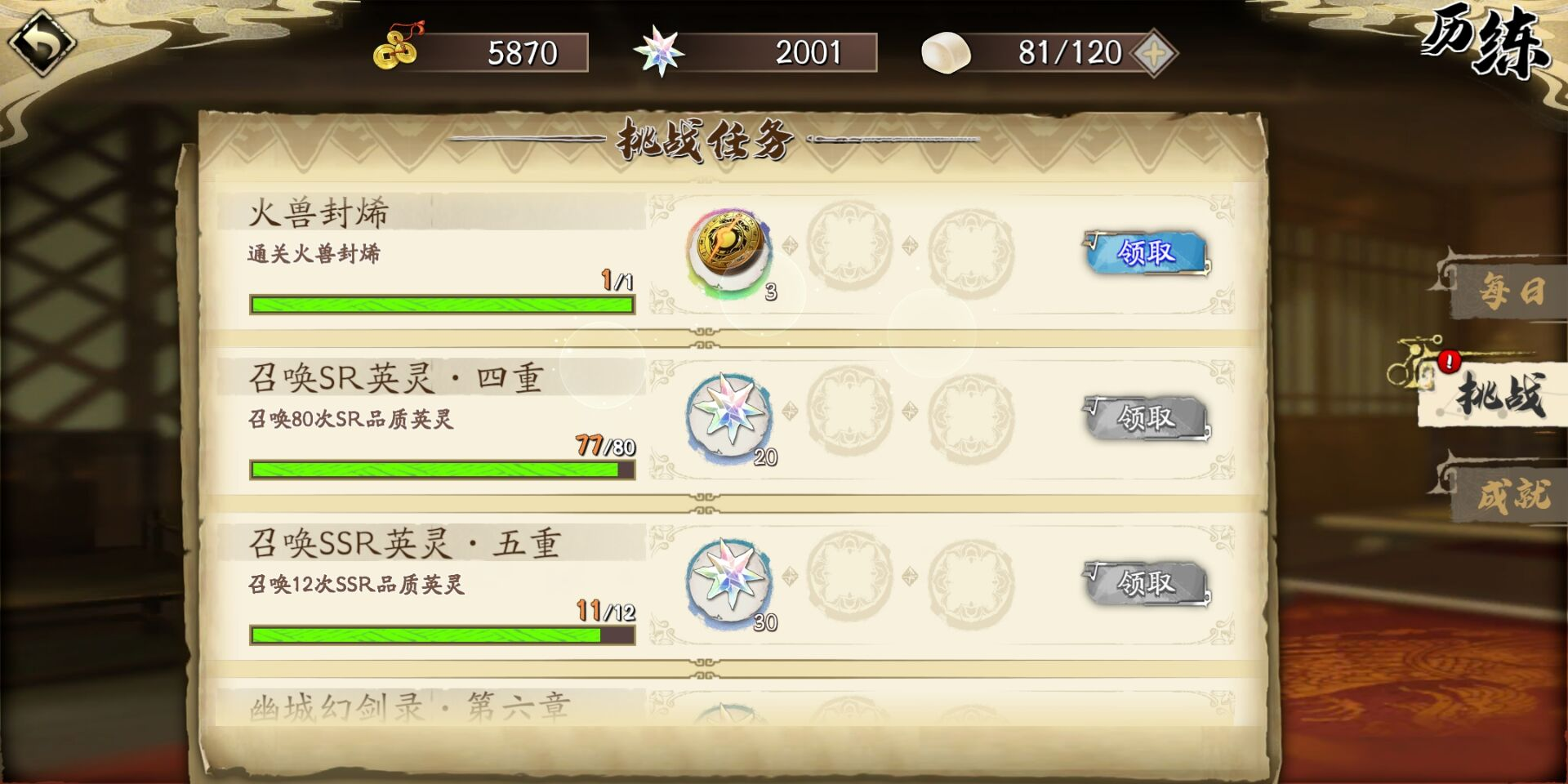 獎勵:時之印x5,初級歷練丹x1