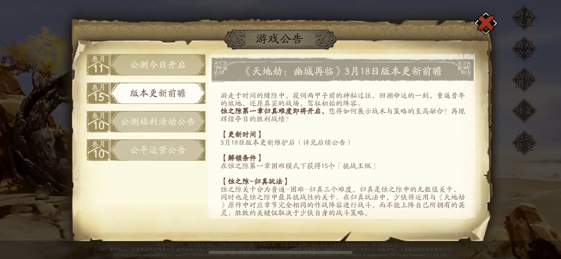 天地劫手遊陸版3月18日版本更新前瞻:時之隙歸真模式開放