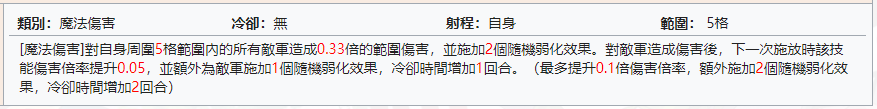 第一次施放後會是CD1、0.38倍、3個隨機弱化(此回合是CD0)