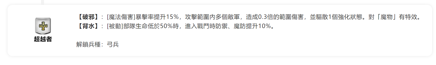 一個合格的坦克要會復活、有超絕、會魔法物理護衛、指揮光環、減傷天賦
