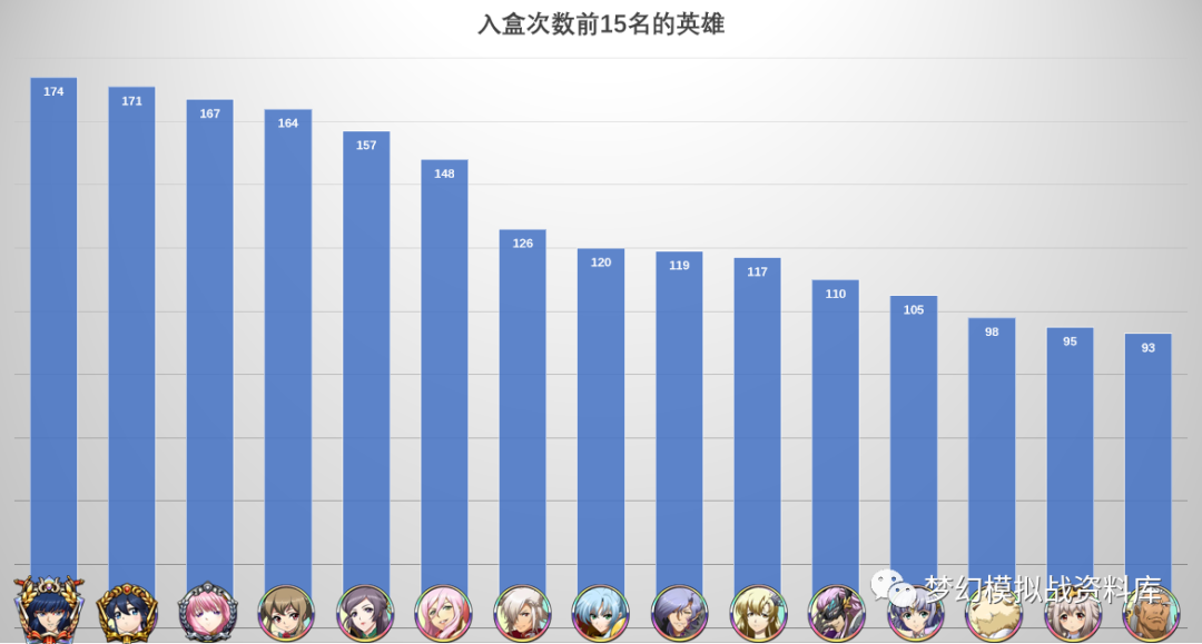 S8賽季淘汰賽階段盒子構成中,進盒次數前15名的英雄為: