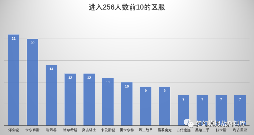 進入256強的區服人數方面,浮空城與卡爾薩斯具備絕對優勢。