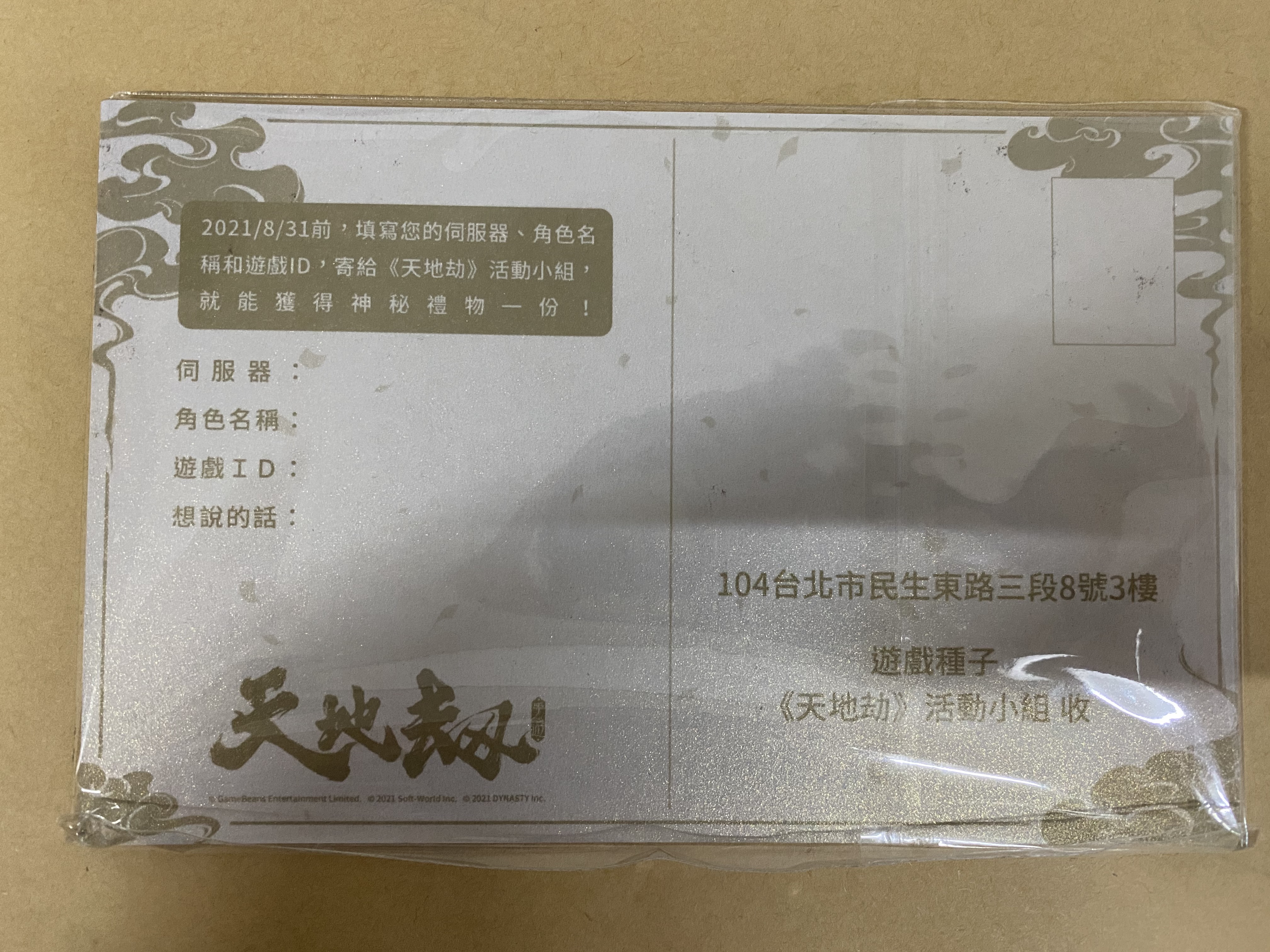 背面,8/31前寄出自己角色的資訊,可以獲得小禮物