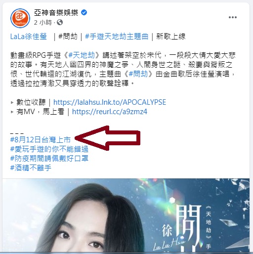 結果亞神音樂娛樂先公布8/12公測了XD