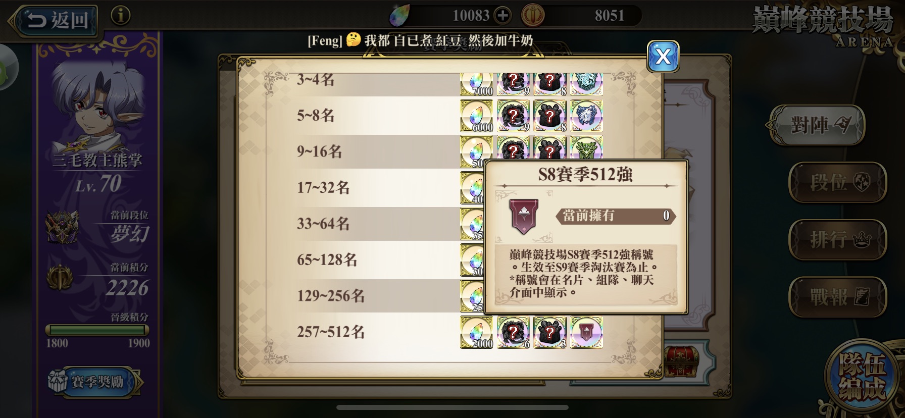 我個人預估S8巔峰的分數門檻