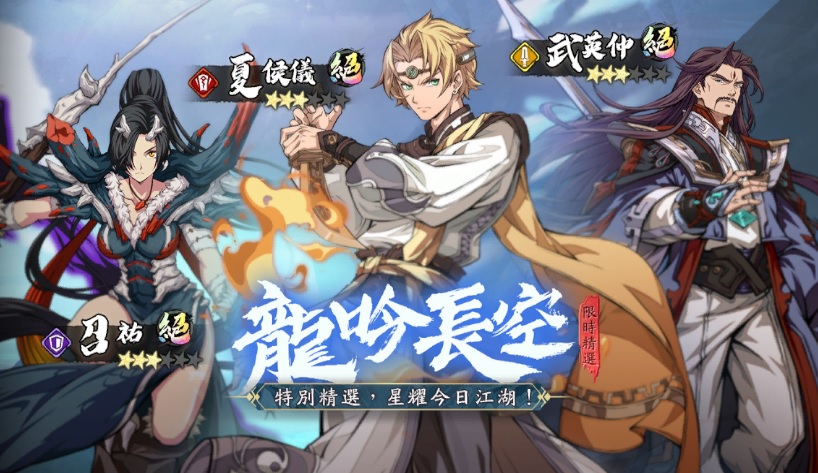 ➤龍吟長空限時精選開啟,您從本活動中召喚的首個絕品英靈,必為召祐&夏侯儀&武英仲三名絕品英靈中您尚未獲得的英靈。