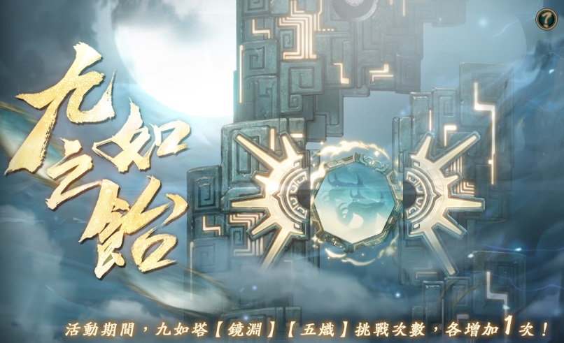 ➤活動期間,九如塔【鏡淵】、【五熾】挑戰次數各增加1次,滿足九如塔開啟條件即可享受挑戰次數增加。